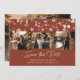 Elegante personalizado terracota e cartões salve a data de fotos de casamento dourados com uma letra moderna. Nosso casamento salva a data mostra uma coleção de fotos de 4 imagens contra um fundo de terracota adornado com luzes de cordas. Personalize facilmente este terracota e ouro, salve o cartão de data com suas imagens e detalhes de casamento, incluindo um site de casamento, se desejar. Para pedidos personalizados, envie-nos uma mensagem.