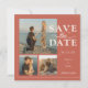 Anuncie seu dia especial com estilo com este cartão de save the date de terracota com fase lunar, apresentando espaço para três fotos. Projetado com uma paleta terrosa quente, tipografia moderna e acentos celestes em aquarela, este layout inspirado em boho é perfeito para casamentos no deserto, temas celestes e casais que amam uma estética romântica e moderna. Personalize facilmente as fotos, nomes e data para criar um item querido que os entes queridos adorarão.