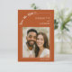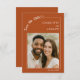 Announce your special day in style with this modern terracotta, burnt orange colored Save the Date card. Featuring your favorite photo framed by a minimalist ivory line border, it perfectly blends timeless elegance with a personal touch. The handwritten script adds a romantic detail, while the clean layout keeps the design contemporary and easy to customize.