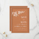 Surpreenda seus amigos e família com este elegante cartão Save the Date, com uma ramificação de magnólia minimalista e fundo de terracotta. Adicione facilmente seus detalhes clicando na opção "personalizar este modelo".
