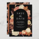 Amaze seus hóspedes com esta elegante, exceto a data com lindas flores de terra e folhas secas com tipografia moderna. Basta adicionar os detalhes do seu evento neste modelo fácil de usar e enfeitar este cartão com a sua foto favorita para torná-lo um único cartão personalizado, que salve o cartão de data.