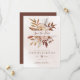 Cartões salve a data modernos do estilo "boho" com flores aquáticas e folhas de outono em tons sujos como marrom-ferrugem, laranja queimado e terracota. Escolha perfeita para casamentos no outono.