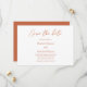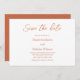 terracotta rústica cai num casamento único e elegante, exceto a data com caligrafia e tipografia clássicas.