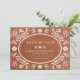 Compartilhe sua história de amor com este Terracotta Rustic Papel Picado Salve a data com sua foto favorita. O papel eterno picado design emparelhado com cores quentes do terracotta cria um belo pano de fundo para o seu anúncio. Perfeito para uma celebração de casamento russa, inspirada no México ou de destino. Correspondendo itens em nossa loja Designs do Partido Cava.