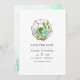 Salva data de casamento com suculentas desérticas de cacto floral azul menta em aquarela com caligrafia elegante personalizável para os detalhes do seu evento. Ideal para qualquer tema ou casamento no jardim.