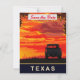 Texas, salve a data convite de casamento, cartão postal de viagem. Caminhão pickup na estrada ao pôtr do sol.