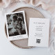 Estes cartões salve a data de casamento minimalistas e elegantes apresentam um texto negro moderno sobre um fundo branco limpo, com sua foto pessoal. Uma aparência simples e na moda. Você pode adicionar seu código de QR digitalizável no verso para que os convidados possam visitar facilmente seu site de casamento.