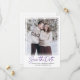 Sua foto do casal é mostrada neste elegante, salve o cartão de data. Um quadro branco simples dá-lhe a importância que merece. Salvar a data é escrito em um texto moderno e moderno. Duas linhas de texto permitem personalizar sua mensagem. O texto no verso fornece mais informações. Projetado para embelezar facilmente qualquer fotografia de estilo em qualquer estação. Muito fácil de personalizar.