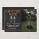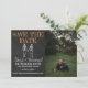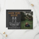 Uma foto incrível salve a data que é acentuada com um design de quadro-negro e fontes brancas e laranja. Coordena-se perfeitamente com a coleção de casamento de Til Death.