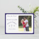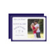 Elegant design features the photo you supply as main image displayed against a white background. Text is featured in a navy-blue font and displayed in the traditional format for a save-the-date card. Your brief message is displayed as an arch over the image of a cross. Initials of bride and groom appear on either side of cross. Entire design is framed with a navy-blue and white border.