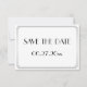 Excelente minúsculo Gatsby art deco white and prata casamento Salve as placas de data plana (5" x 3,5") com texto personalizável