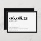 A Tipografia Negra Minimalista Branco Simples Salve a Data. Simples, porém luxuoso e elegante preto e branco, salve o cartão postal do anúncio de data. Projetado com tipografia forte e ousada. Conjunto inteiro disponível, faça o check-out da coleção.