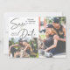Duas fotos simples Salve a data com uma caligrafia casual divertida escrita à mão - um design de tipografia em oliva e preto - cores para a caligrafia e todas as palavras "Salvar a data" podem ser alteradas para melhor ajustado da sua foto, assim como de todo o outro texto - use o seletor de cores para tirar cores das suas fotos