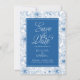 Atraia seus convidados para marcar a data do seu dia especial com este deslumbrante Floral Toile Azul Francês Save the Date de Casamento. Os convidados ficarão encantados em participar do seu casamento após receberem cartões com este elegante desenho de crisântemos azuis e moderno sofisticado. Perfeito para um casamento romântico com tema de jardim, este convite exala estilo refinado e charme atemporal. O texto personalizável permite que você adapte os detalhes ao seu gosto e crie um cartão verdadeiramente único. Projetado para casais que buscam elegância sem esforço com um toque floral.