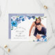 Tons pastel elegantes de cartões de foto de casamento floral azul salve a data projetados para serem personalizados rápida e facilmente para os detalhes do seu evento.