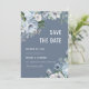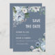 Cartão elegante de casamento de inverno com flores em tons de cinza e azul gelado, com buquê de flores em aquarela e folhagens em tons gelados. Por favor, entre em contato para qualquer ajuda na personalização ou se precisar de qualquer outro produto com este design.