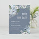Cartão elegante de casamento de inverno com flores para salvar a data apresenta buquê de flores em aquarela cinza elegante e azul gelado com folhagens de tons gelados. Por favor, entre em contato comigo para qualquer ajuda na personalização ou se você precisar de qualquer outro produto com este design.