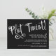 Casamento bonito salve o novo cartão de encontro em preto com um bonito roteiro escrevendo de mão enfeitado com pequenos corações. Dê aos seus convidados de casamento a sua nova data de casamento e qualquer informação adicional que você precise com este cartão de casamento adiado.