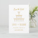 Surpreenda seus entes queridos com este elegante cartão de save the date, apresentando torre de champanhe com laços e detalhes editáveis em combinação de três belas fontes. Personalize facilmente clicando na opção "personalizar". Para mais edições, use a opção "editar usando a ferramenta de design".