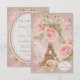 Convites de casamento Elegantes Torre Eiffel Francesa Parisiense Save the Date com uma bela colagem impressa shabby chic de rosas cor-de-rosa, flores da primavera, espirais ornamentadas e floreios e a Torre Eiffel. No verso dos convites há uma torre Eiffel dourada e uma matriz de pérolas impressas glamorosas, rosas e renda branca com texto para você personalizar com os detalhes do seu evento. Convites sofisticados, modernos e femininos. Perfeito para um evento de primavera, verão ou outono. POR FAVOR, NOTE - TODOS OS CONVITES NO ZAZZLE TÊM IMAGENS IMPRESSAS PLANAS. Matriz de pérolas por ©Hazel Kinvig-Paul www.design-a-dream.co.uk Se precisar de ajuda para personalizar seu produto, entre em contato comigo através da minha loja. Estou ansiosa para ajudar. Ten