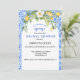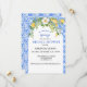 Ela Encontrou Seu Amor: O tema de celebração de casamento de limão é ideal para um casamento de verão. Frutas cítricas, refrescantes e frias, sempre fazem belas apresentações e refrescos. A Coleção de Limões de Jenny combina limões pintados com estilo e azulejos azuis mediterrâneos. Os azulejos neste design formam uma moldura azul. É realçado por uma fina moldura dourada.
