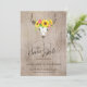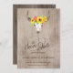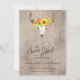 Guarde o cartão Date com girassóis, pop de flores cor-de-rosa e verde decorando um crânio de touro. Atualize com seus detalhes de casamento. Isto corresponde a uma coleção na minha loja.