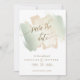 Casamento elegante Salve o cartão de Data com belos traços verdes de sábio em uma mistura harmoniosa de bege creme, pêssego e matizes verdes com a frase "Salve a Data" em uma caligrafia escrita à mão graciosa e moderna. Atrativo de volta com lavagem de pincel. Estilo moderno e elegante minimalista. Nota: a tipografia não está em folha real, mas na impressão de preferencialmente em uma matiz de ouro. Parte da nossa coleção "Sage Green Brush Strokes Wedding".