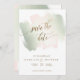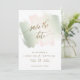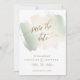 Casamento elegante Salve o cartão de Data com belos traços verdes de sábio em uma mistura harmoniosa de matizes verdes, cor-de-pêssego e sábios, com a frase "Salve a Data" em uma caligrafia escrita à mão graciosa. Atrativo de volta com lavagem de pincel. Estilo moderno e elegante minimalista. Nota: a tipografia não está em folha real, mas na impressão de preferencialmente em uma matiz de ouro. Parte da nossa coleção "Sage Green Brush Strokes Wedding".
