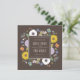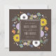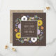 Inspirado em pacotes de sementes de flores, este cartão de save the date apresenta uma borda de flores mistas desenhadas à mão.