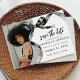 Elevate your graduation celebration with our chic and trendy graduation save the date cards. Sporting a sophisticated watercolor black ribbon tied into a bow, and your favorite photo, these invites eloquently merge style and elegance. Our easy-on-the-fingers personalization feature makes it a joy to invite your loved ones. Plus, digital download option available for those who love a good blend of modern and traditional.