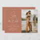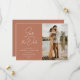 terracotta tertonas design de tipografia branca com letra na moda moderna. Nosso belo casamento personalizado salve os cartões de data... uma design que complementa qualquer tema de casamento. A frente da placa apresenta um texto personalizado junto com uma bela imagem.