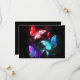 Três borboletas luminosas, vermelhas, roxas, verdes, texturizadas, noturnas sobre fundo luminoso preto.