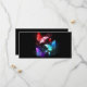 Três borboletas luminosas, vermelhas, roxas, verdes, texturizadas, noturnas sobre fundo luminoso preto.
