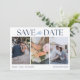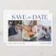 Capture sua história de amor com estilo e sofisticação em nosso Save the Date de casamento de três fotos elegantes. Este design atemporal mostra lindamente três de seus momentos favoritos juntos, oferecendo aos entes queridos uma visão da alegria de sua jornada até agora. Com um layout clássico e tipografia refinada, este Save the Date define um tom gracioso para o seu grande dia, misturando sentimento sincero com um toque de elegância. Perfeito para casais que desejam um design significativo e voltado para fotos que familiares e amigos guardarão como uma prévia da celebração a vir.