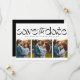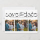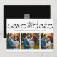 Salve a data! Este design de save the date fotográfico único e elegante apresenta um tratamento de texto moderno acima de uma colagem de três fotos. É um cartão perfeitamente moderno para anunciar seu noivado e casamento. O verso é um preto chic combinando com espaço para uma mensagem personalizada que pode incluir detalhes do fim de semana do casamento e um código QR para o site do seu casamento. Este save the date original da Lea Delaveris Design faz parte de uma coleção onde você pode encontrar mais cores e estilos. Também está disponível como download digital de save the date.
