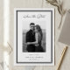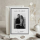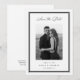 Announce your upcoming wedding with these elegant save the date cards by Redwood and Vine Design Co, featuring a vertical photo against a framed by a decorative border in crisp, classic black and white. "Save the Date" appears in flowing calligraphy script, with your wedding date, names, and location beneath your photo. Customize the back with additional text and a custom QR code leading to your wedding website for more information.