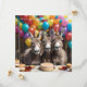 Foto De Celebração De Seu Aniversário Com Bolo, Balões E Navios a vapor São Três Tripletes De Donkey.