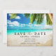 Tropical beach scene with palm tree wedding save the dates for your destination beach wedding. This invitation can be used for the location of your choice, simply change the wording on the template to fit your needs. Add your details to the front and photo to the backside of the card.
