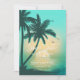 As cores de apascentamento da sede, amarelo-manteiga e verde-mar dão aos pedaços nesta design correspondente alguns dos seus apelos irresistíveis... as belas palmeiras das ilhas, frondas palmeiras, aves delicadas no céu e o nascer do sol gigante sobre a água cintilante oferecem facilmente o resto. O cartão Save the Date mostrado aqui apresenta todas as informações acima, assim como uma sombra da palmeira na areia para um sacudir impressionante. Procure ID581 para ver os produtos correspondentes e outras opções de cor para este design.