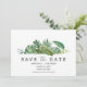 Wedding save the dates in a tropical leaf design to match our coordinating invitation, perfect for your tropical beach destination wedding. Inspired by the lush foliage found in tropical climates, this save-the-date is designed with a variety of leafy motifs that will transport you and your guests to a paradise oasis.