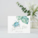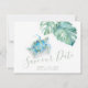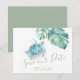 Prepare-se para dizer “Nós vamos nos casar!” em estilo tropical. Anuncie que você está noivo com este cartão tropical de Save the Date que apresenta a frase Save Our Date em um estilo de letra manuscrita. Projetado para casais que planejam um casamento na praia ou em um destino tropical, este cartão de aquarela apresenta minha pintura original de uma tartaruga marinha serena cercada por folhas de monstera e sotaques em verde suave. É perfeito para amantes do oceano, casamentos na praia e celebrações descontraídas nos Florida Keys, Havaí ou em qualquer lugar quente e ensolarado.