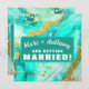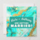 Anuncie o seu casamento tradicional ou de destino com este modelo fácil de atualizar. Basta preencher o nome, idade, data, hora, local da festa e quaisquer notas de RSVP ou outras informações. Mude de "Marc e Anthony estão se casando!" para "os Willoughby estão organizando o Natal!". Disponível em muitos desenhos para todas as ocasiões. O design elegante apresenta uma pintura a tinta alcoólica com tons de azul-turquesa e verde-teal com detalhes marmoreados em branco. Folha de Ouro 24K falsa complementa o padrão luxuoso.