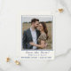 Design features the photo you provide as main design displayed against a cream background and framed by an elegant, navy-blue colored border. Just below photo, your text containing heading, names and city & state of wedding are displayed in a matching navy-blue font.