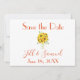 Um belo cheio vaso de girassóis, que salva a data tem um fundo branco. O texto é laranja e o verso é verde-claro. Design do Convite: WeddingsbyRhoadie Floral trabalho de arte: AMBilustrações http://www.etsy.com/shop/AMBillustrations/