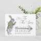 Marque nos calendários de seus convidados a nova data do seu casamento com nosso cartão "Vamos Tentar Novamente", um convite para salvar a data lindamente desenhado com tema da Alice no País das Maravilhas retrô. Perfeito para um casamento com tema de Alice no País das Maravilhas. Restauramos meticulosamente a icônica ilustração retrô do coelho branco de Alice no País das Maravilhas desenhando à mão e dando vida com belos tons de aquarela e substituindo o guarda-chuva do coelho por um lápis. O verso apresenta nosso arranjo de flores em estilo aquarela e desenho à mão com um relógio de bolso retrô desenhado. Elegantes e sofisticados pares de estilo de texto realçam esse tema mágico, caprichoso e icônico de Alice no País das Maravilhas retrô.