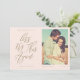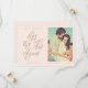 Às vezes as coisas mudam. Atualize seus convidados de casamento com a nova data do seu casamento com nosso cartão moderno de aviso prévio. O design apresenta um layout simples e moderno com "Vamos tentar novamente" exibido em caligrafia moderna. Fundo simples de rosa discreto com nome do casal, data do casamento, local e foto.
