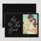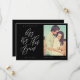 Às vezes as coisas mudam. Atualize seus convidados de casamento com a nova data do seu casamento com nosso cartão moderno de remarcação de data. O design apresenta um layout simples e moderno com "Vamos tentar novamente" exibido em caligrafia moderna. Fundo preto simples com nome do casal, data do casamento, localização e foto.