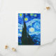 Cartão com a pintura a óleo de Vincent van Gogh na Noite Estrelada (1889). Inspirada pela sua estadia num asilo, a arte representa uma aldeia debaixo de um céu noturno de lua azul e amarela e estrelas. Um presente de excelente para fãs do Poste-impressionismo e da arte holandesa.