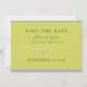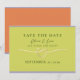Anuncie seu casamento em um estilo moderno e ousado com este cartão de "guarde a data" em verde cítrico com elegantes destaques em laranja e roxo inspirados nas paletas da moda: Verde Cítrico, Ousadia e Brilho do Pôr do Sol. O design inclui um motivo minimalista de corda dourada em forma de coração, tipografia limpa e uma paleta de cores vibrantes perfeita para casais que amam papelaria alegre e expressiva.