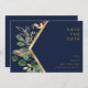 Este verde de Natal moderno | marinho horizontal para salvar a data é perfeita para o seu simples casamento no inverno boho. Concebidos com folha de ouro falso geométrica e uma aquarela botânica minimalista com toques de eucalipto verde e de winterberry vermelha. Tudo em um clássico fundo azul marinho. Estes elementos dão-lhe uma sensação moderna, mas elegante, de completar a aparência que você quer! Você pode personalizar com suas próprias fotos ou mantê-las como estão. Não se esqueça de olhar o resto da coleção para completar o tema do casamento!